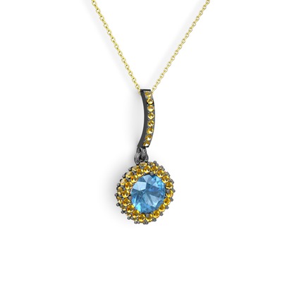 Akuamarin ve sitrin 925 ayar siyah rodyum kaplama gümüş kolye (40 cm altın rolo zincir)