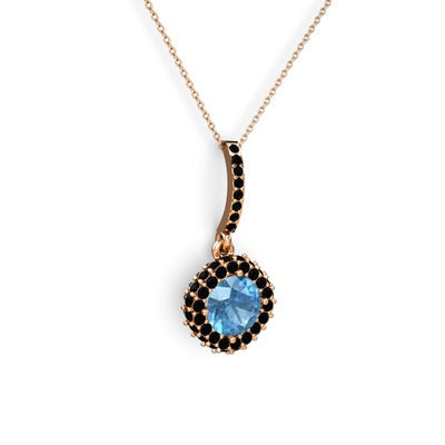Akuamarin ve siyah zirkon 8 ayar rose altın kolye (40 cm rose altın rolo zincir)