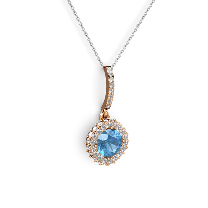 Akuamarin ve swarovski 8 ayar rose altın kolye (40 cm beyaz altın rolo zincir)