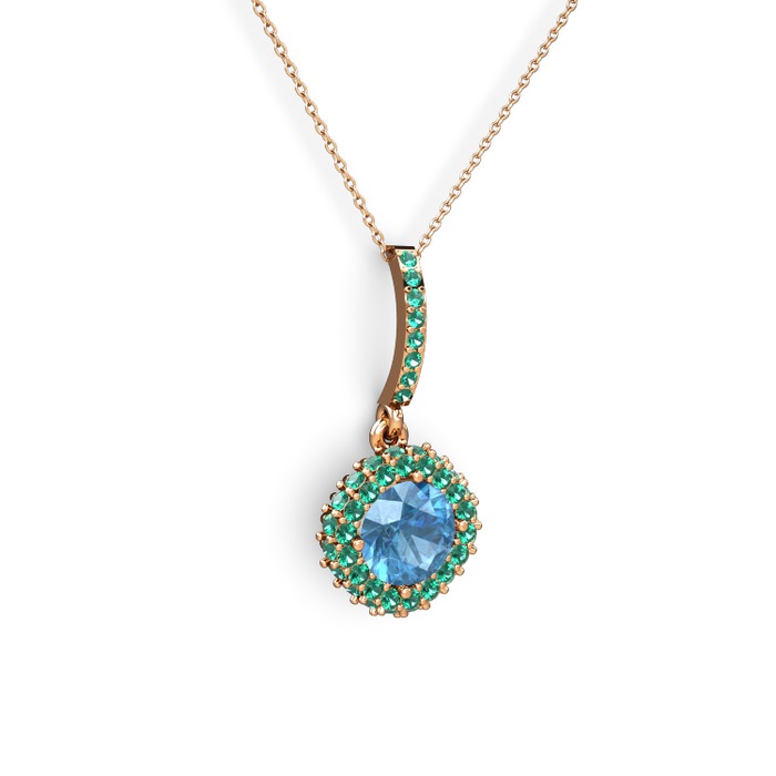 Akuamarin ve yeşil kuvars 8 ayar rose altın kolye (40 cm rose altın rolo zincir)