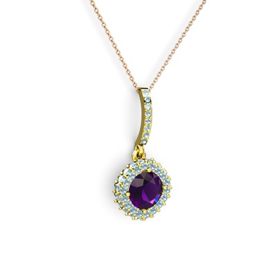 Ametist ve akuamarin 925 ayar altın kaplama gümüş kolye (40 cm rose altın rolo zincir)