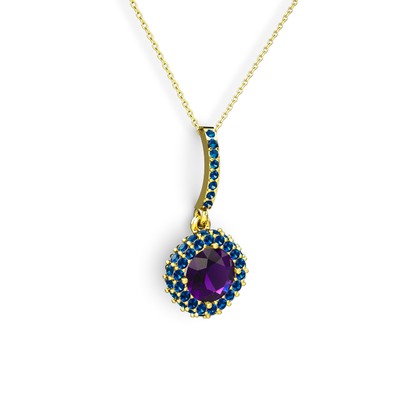 Ametist ve lab safir 925 ayar altın kaplama gümüş kolye (40 cm altın rolo zincir)