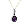 Ametist ve siyah zirkon 18 ayar beyaz altın kolye (40 cm gümüş rolo zincir)