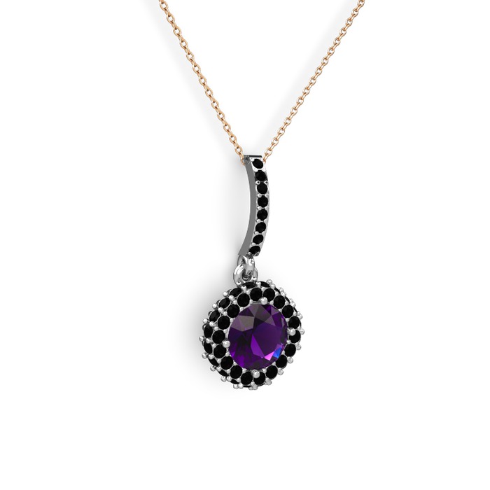 Ametist ve siyah zirkon 8 ayar beyaz altın kolye (40 cm gümüş rolo zincir)