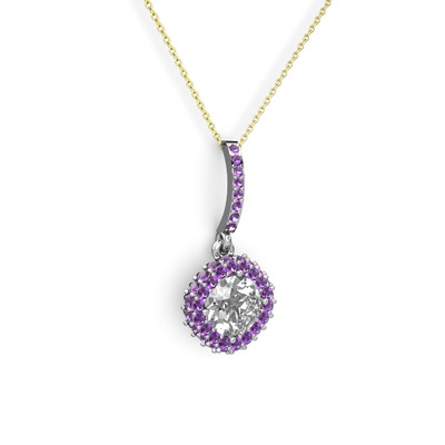 Beyaz zirkon ve ametist 8 ayar beyaz altın kolye (40 cm altın rolo zincir)
