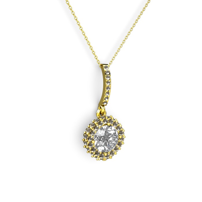Beyaz zirkon ve dumanlı kuvars 8 ayar altın kolye (40 cm gümüş rolo zincir)