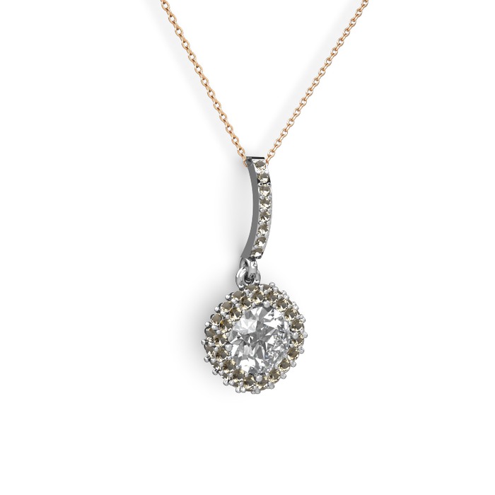 Beyaz zirkon ve dumanlı kuvars 8 ayar beyaz altın kolye (40 cm rose altın rolo zincir)