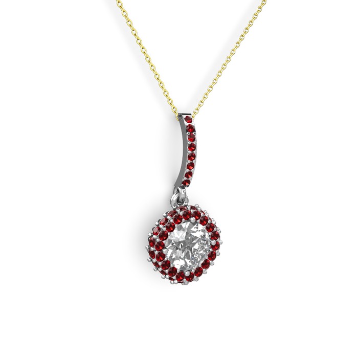 Beyaz zirkon ve garnet 8 ayar beyaz altın kolye (40 cm gümüş rolo zincir)