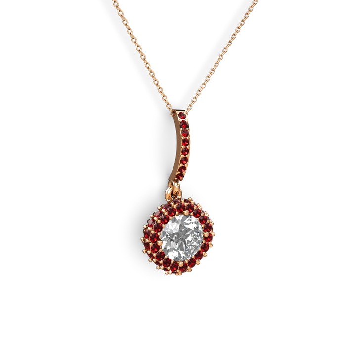 Beyaz zirkon ve garnet 8 ayar rose altın kolye (40 cm rose altın rolo zincir)