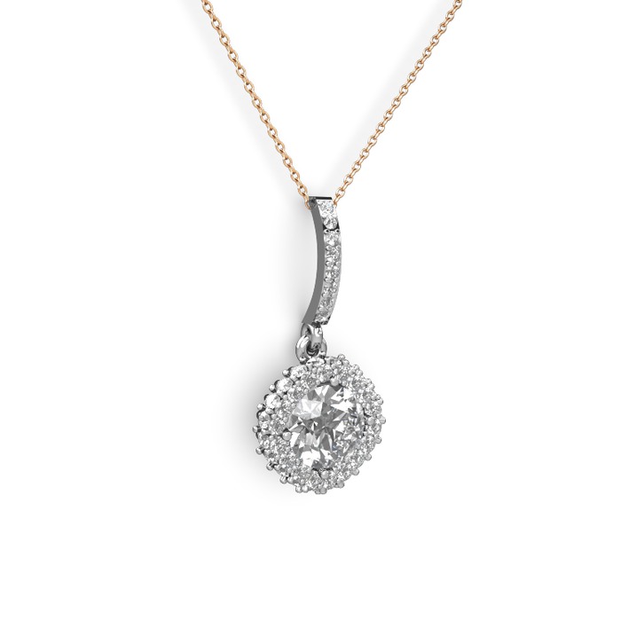 Beyaz zirkon 925 ayar gümüş kolye (40 cm rose altın rolo zincir)