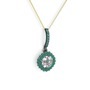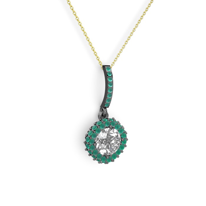 Beyaz zirkon ve kök zümrüt 925 ayar siyah rodyum kaplama gümüş kolye (40 cm altın rolo zincir)
