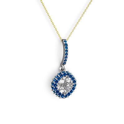 Beyaz zirkon ve lab safir 18 ayar beyaz altın kolye (40 cm altın rolo zincir)