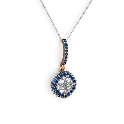 Beyaz zirkon ve lab safir 18 ayar rose altın kolye (40 cm beyaz altın rolo zincir)