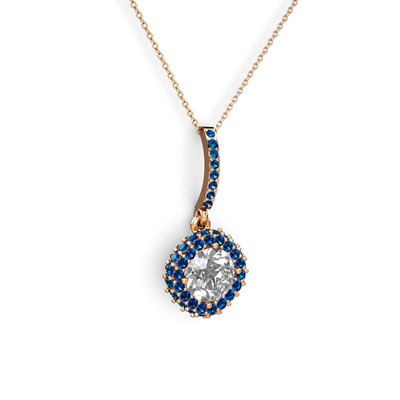 Beyaz zirkon ve lab safir 925 ayar rose altın kaplama gümüş kolye (40 cm gümüş rolo zincir)