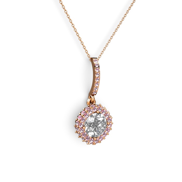 Beyaz zirkon ve pembe kuvars 8 ayar rose altın kolye (40 cm rose altın rolo zincir)