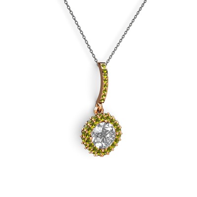 Beyaz zirkon ve peridot 8 ayar rose altın kolye (40 cm gümüş rolo zincir)