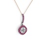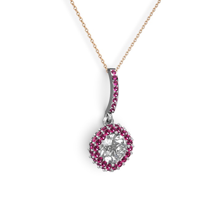 Beyaz zirkon ve rodolit garnet 18 ayar beyaz altın kolye (40 cm gümüş rolo zincir)
