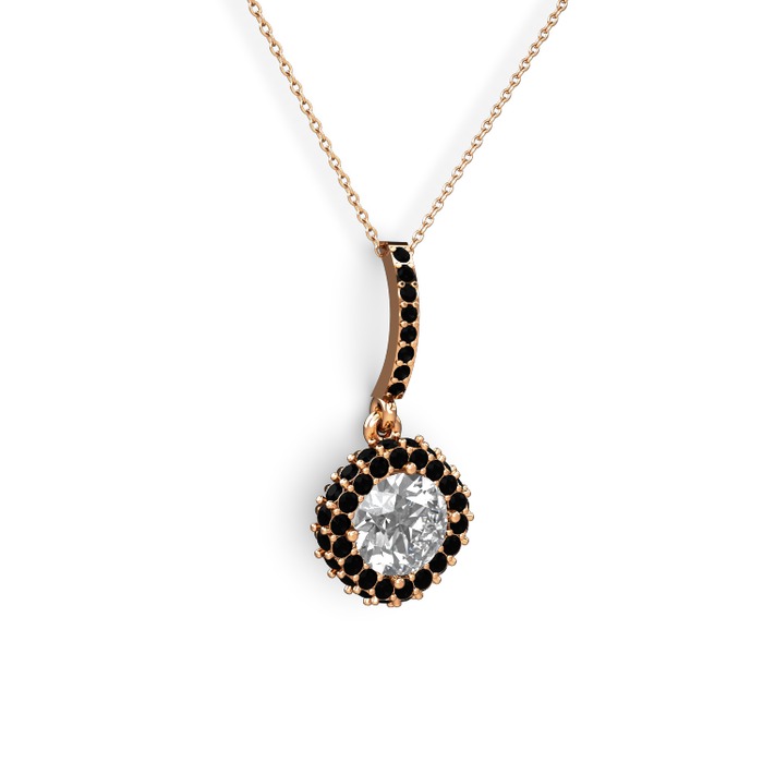 Beyaz zirkon ve siyah zirkon 18 ayar rose altın kolye (40 cm rose altın rolo zincir)