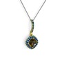 Dumanlı kuvars ve lab safir 8 ayar altın kolye (40 cm gümüş rolo zincir)
