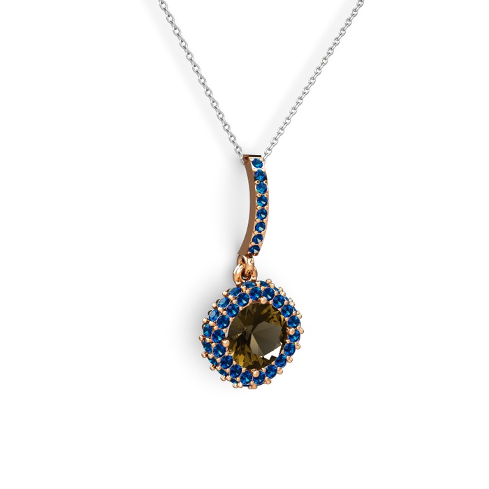 Dumanlı kuvars ve lab safir 925 ayar rose altın kaplama gümüş kolye (40 cm gümüş rolo zincir)