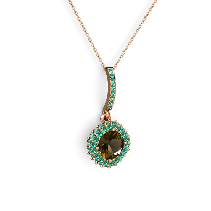 Dumanlı kuvars ve yeşil kuvars 14 ayar rose altın kolye (40 cm rose altın rolo zincir)