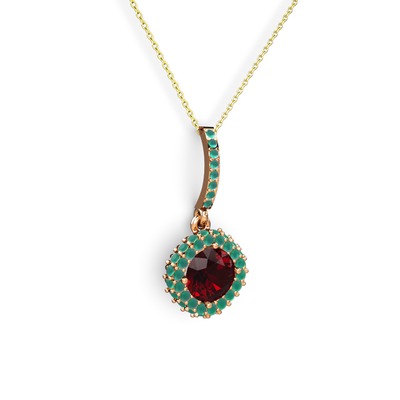 Garnet ve kök zümrüt 925 ayar rose altın kaplama gümüş kolye (40 cm altın rolo zincir)