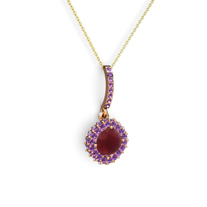 Kök yakut ve ametist 14 ayar rose altın kolye (40 cm altın rolo zincir)