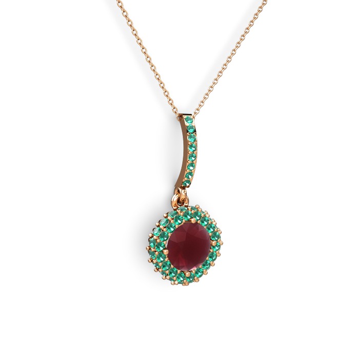 Kök yakut ve yeşil kuvars 8 ayar rose altın kolye (40 cm rose altın rolo zincir)