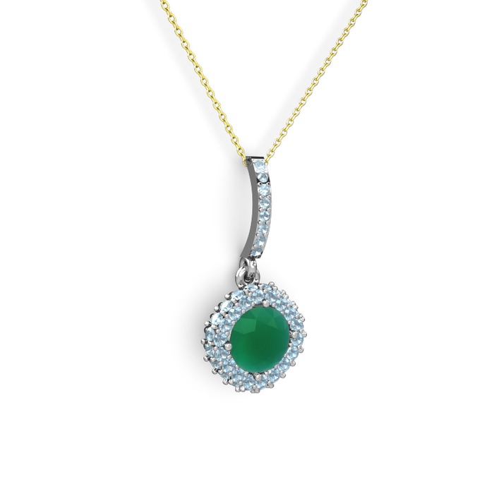 Kök zümrüt ve akuamarin 14 ayar beyaz altın kolye (40 cm gümüş rolo zincir)