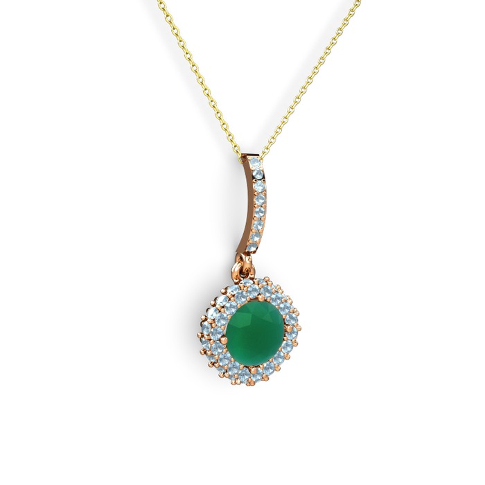 Kök zümrüt ve akuamarin 8 ayar rose altın kolye (40 cm altın rolo zincir)