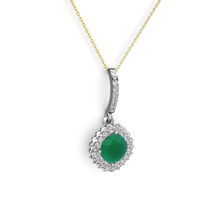 Kök zümrüt ve pırlanta 14 ayar beyaz altın kolye (0.76 karat, 40 cm altın rolo zincir)