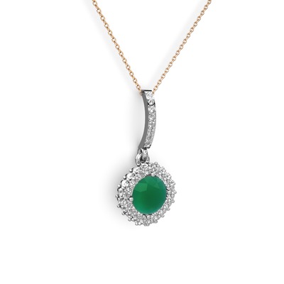 Kök zümrüt ve pırlanta 18 ayar beyaz altın kolye (0.76 karat, 40 cm gümüş rolo zincir)