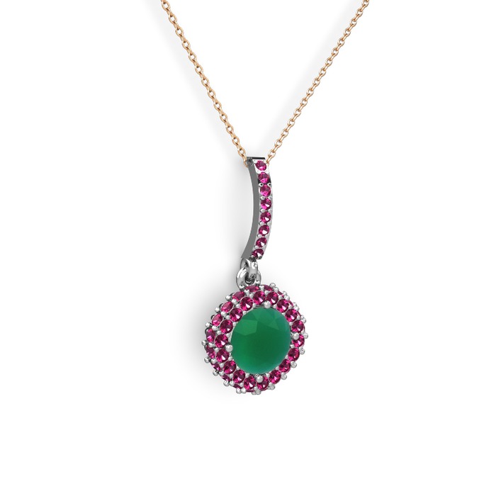 Kök zümrüt ve rodolit garnet 8 ayar beyaz altın kolye (40 cm rose altın rolo zincir)