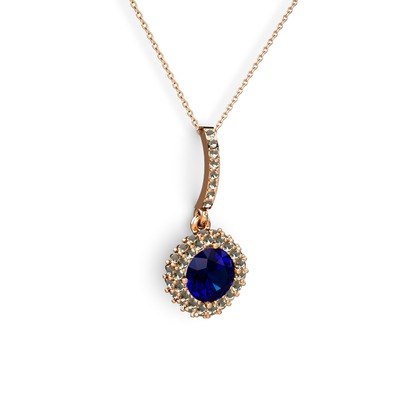 Lab safir ve dumanlı kuvars 8 ayar rose altın kolye (40 cm rose altın rolo zincir)