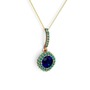 Lab safir ve kök zümrüt 18 ayar rose altın kolye (40 cm altın rolo zincir)
