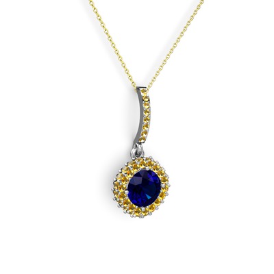 Lab safir ve sitrin 14 ayar beyaz altın kolye (40 cm altın rolo zincir)