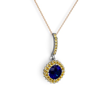 Lab safir ve sitrin 925 ayar gümüş kolye (40 cm rose altın rolo zincir)