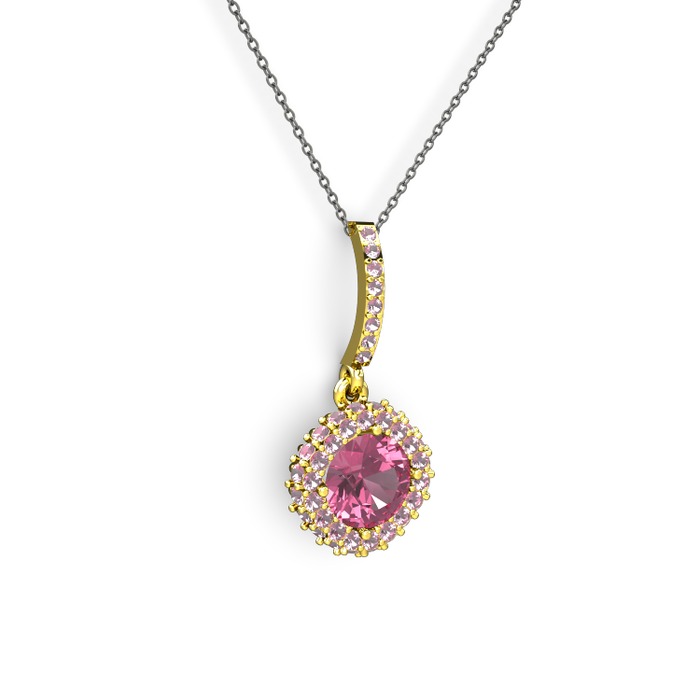Pembe kuvars 925 ayar altın kaplama gümüş kolye (40 cm gümüş rolo zincir)