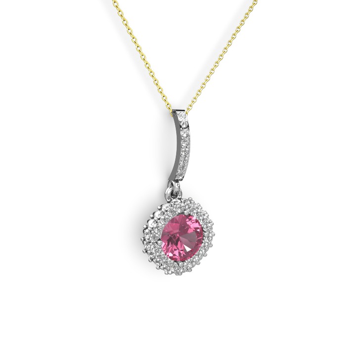 Pembe kuvars ve beyaz zirkon 18 ayar beyaz altın kolye (40 cm altın rolo zincir)