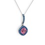 Pembe kuvars ve lab safir 14 ayar beyaz altın kolye (40 cm gümüş rolo zincir)