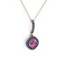 Pembe kuvars ve lab safir 14 ayar rose altın kolye (40 cm gümüş rolo zincir)