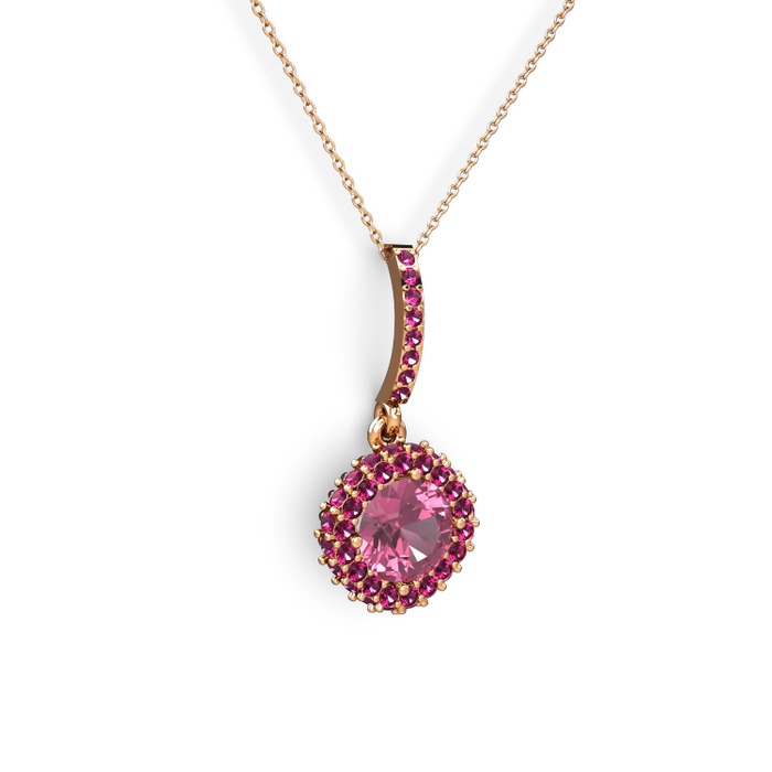 Pembe kuvars ve rodolit garnet 925 ayar rose altın kaplama gümüş kolye (40 cm rose altın rolo zincir)