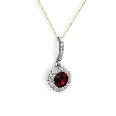 Rodolit garnet ve pırlanta 14 ayar beyaz altın kolye (0.76 karat, 40 cm altın rolo zincir)