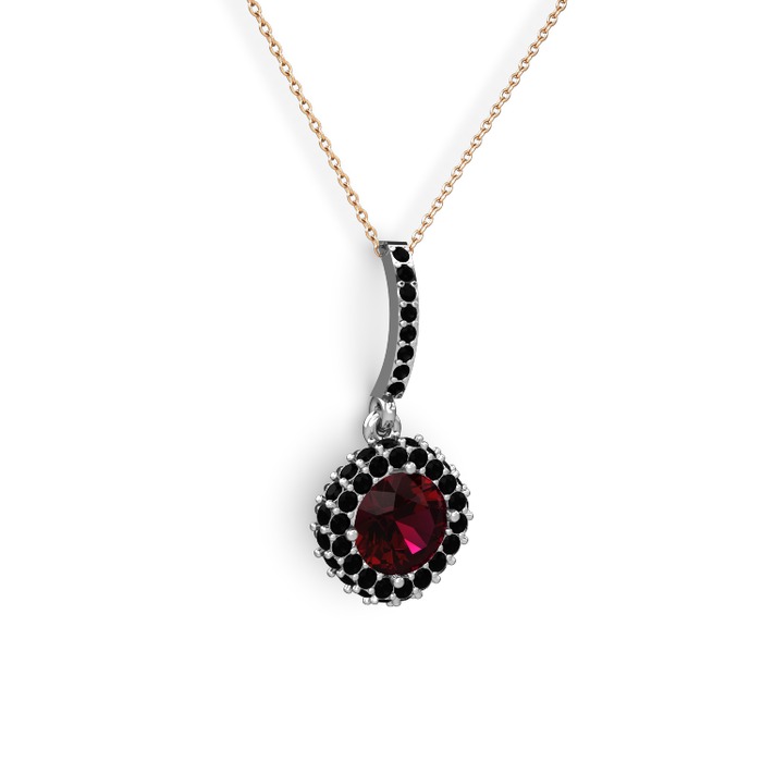 Rodolit garnet ve siyah zirkon 8 ayar beyaz altın kolye (40 cm rose altın rolo zincir)