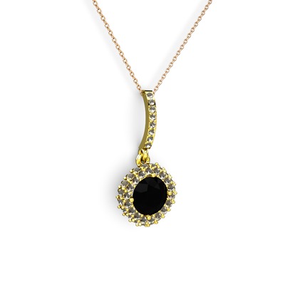 Siyah zirkon ve dumanlı kuvars 18 ayar altın kolye (40 cm rose altın rolo zincir)