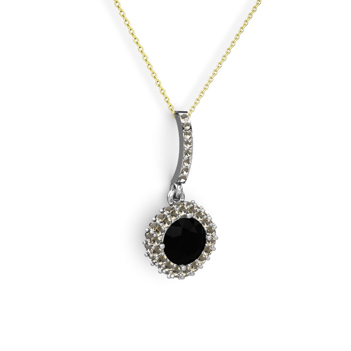 Siyah zirkon ve dumanlı kuvars 18 ayar beyaz altın kolye (40 cm gümüş rolo zincir)