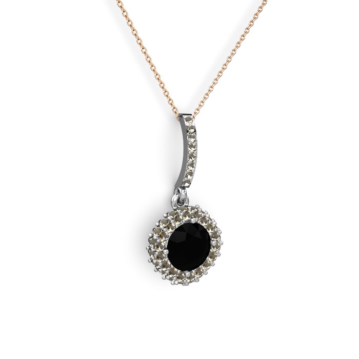 Siyah zirkon ve dumanlı kuvars 18 ayar beyaz altın kolye (40 cm rose altın rolo zincir)