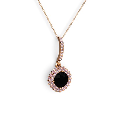 Siyah zirkon ve pembe kuvars 925 ayar rose altın kaplama gümüş kolye (40 cm rose altın rolo zincir)