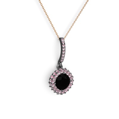 Siyah zirkon ve pembe kuvars 925 ayar siyah rodyum kaplama gümüş kolye (40 cm rose altın rolo zincir)
