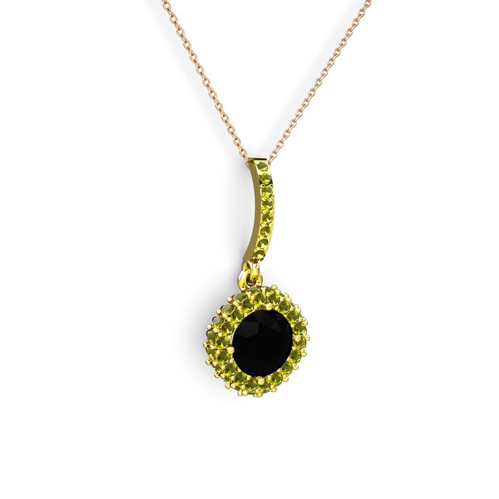 Siyah zirkon ve peridot 14 ayar altın kolye (40 cm rose altın rolo zincir)